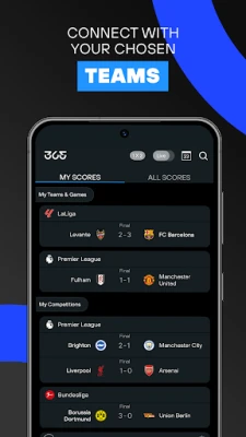 Dompel jezelf onder in de adrenaline van de sportwereld met 365Scores, de vertrouwde keuze voor miljoenen gepassioneerde fans wereldwijd. Ervaar ongekende realtime updates, cruciale statistieken en diepgaande analyses, alles binnen handbereik. Of je nu de spanning van de UEFA Champions League, de intensiteit van de Engelse Premier League, de flair van LaLiga, de dynamiek van de NBA, de precisie van Wimbledon, of een van de ruim 2000 andere competities in 10 verschillende sporten volgt – van voetbal en basketbal tot tennis en verder – 365Scores bundelt al je favoriete sportmomenten op één naadloos platform.