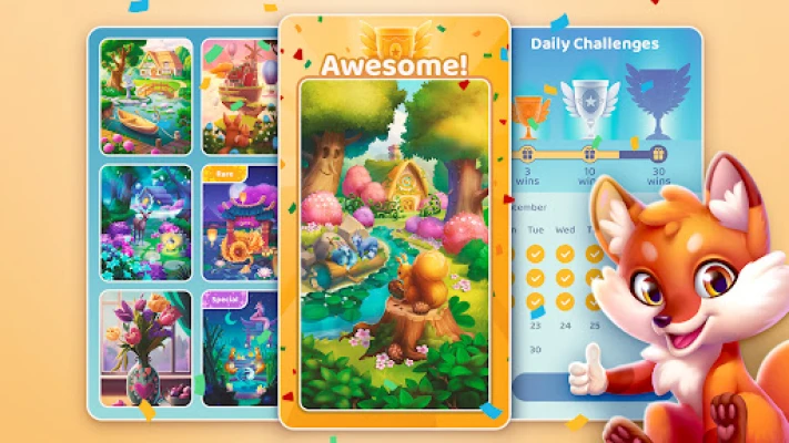 De betoverende gameplay van Art of Puzzles combineert de klassieke charme van legpuzzels met de interactieve flair van stickerspellen, wat resulteert in een compleet nieuwe ervaring. Zie hoe verbluffende fantasiewerelden en hun charmante bewoners ontwaken terwijl jij de stukjes op hun plek legt. Met honderden geanimeerde afbeeldingen om te verkennen, biedt elk voltooid niveau toegang tot een gloednieuwe, unieke kunstuitdaging, waardoor je reis door deze magische rijken steeds verder wordt uitgebreid.