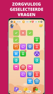 Meet je met mede-kennisjagers door prestaties te ontgrendelen en de ranglijsten te beklimmen, of nodig vrienden uit voor extra bonussen. QuizzLand biedt een scala aan tactische hulpmiddelen om je te ondersteunen: van een 'Dubbele Kans' bij twijfel tot het elimineren van foute antwoorden met 'Vijftig Vijftig'. Ook zijn er speciale hulpjes voor het doolhof, zoals het onthullen van de uitgang of het omkeren van tegels. Je voorraad muntstukken kan verder worden aangevuld via dagelijkse bonussen, het bekijken van korte video's, of door je geheugen en concentratie te trainen in leuke minigames die strategisch in het doolhof zijn verwerkt. Ontdek hoe gemakkelijk en vermakelijk het kan zijn om je hersenen te prikkelen en nieuwe feiten te leren, vraag na vraag.