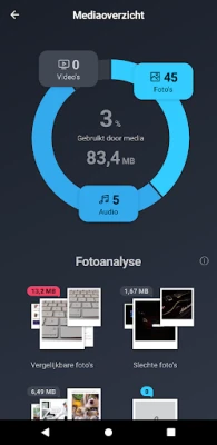 Naast het grondig opschonen biedt AVG Cleaner u een helder overzicht van de vitale statistieken van uw telefoon op één scherm, waardoor u altijd op de hoogte bent van de gezondheid en prestaties van uw apparaat. De kracht van AVG Cleaner ligt in zijn gebruiksgemak: met slechts één tik kunt u uw apparaat scannen, analyseren en optimaliseren. Zo transformeert u een overladen toestel in een snel en efficiënt werkpaard, klaar voor al uw taken en pleziertjes, en verhoogt u de levensduur en responsiviteit van uw telefoon.