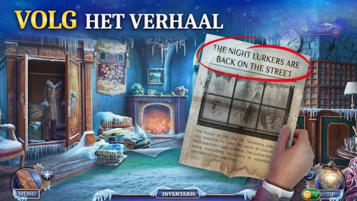 Icebound Secrets: De Vloek van Frostwood werpt je midden in een sfeervolle hidden-object thriller, waar elke aanwijzing telt en elk object een deel van de puzzel is. Verken de bevroren straten, die zich ontvouwen als een labyrinth onder een deken van sneeuw, terwijl legendarische figuren – spookachtige witte wandelaars – 's nachts door de schaduwen sluipen. Deze unieke mix van verborgen objecten zoeken en diepgaand onderzoek leidt je door een web van misleiding, waarbij mini-games en logische raadsels je intellect uitdagen. Ontmoet onvergetelijke personages die hun eigen mysteries met zich meedragen en duik in een verhaal dat de waarheid stap voor stap onthult.