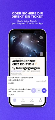 Met Rausgegangen mis je geen moment meer. Ontvang dagelijks persoonlijke evenemententips, handgekozen door lokale experts, en zie de topaanbevelingen van de dag direct bovenaan. De app is niet alleen overzichtelijk en intuïtief in gebruik, maar ook volledig gratis. Creëer eenvoudig een kosteloos account en maak kans op felbegeerde plaatsen op gastenlijsten, zelfs voor reeds uitverkochte evenementen. Rausgegangen staat garant voor een diverse, inspirerende en verrassende agenda, die zowel lokaal als nationaal relevante happenings omvat.
